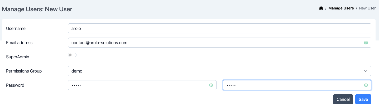 - SuparAdmin If enabled, the user will have maximum permissions. SuparAdmin users can be identified by a little crown.